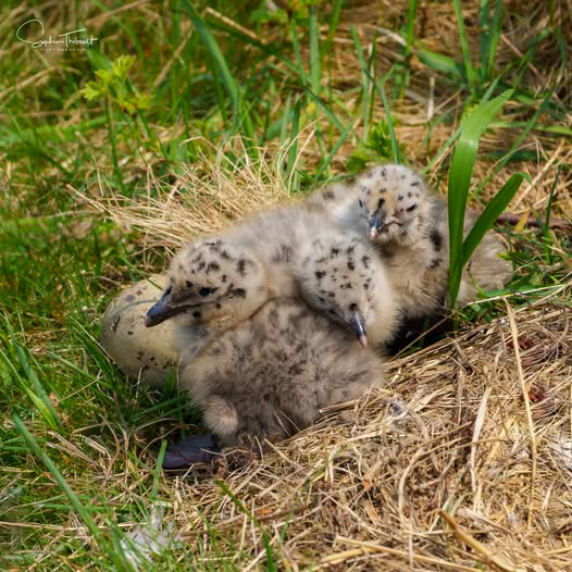 Source : Sophie Thibault, Île aux Lièvres 2025. Parmi ses 400 images rapportées de l’atelier-photo avec Société Duvetnor, une de ses préférées: un trio de Goélands argentés juvéniles.