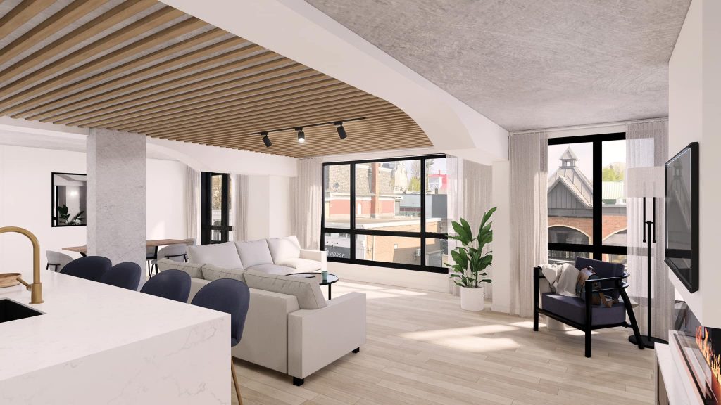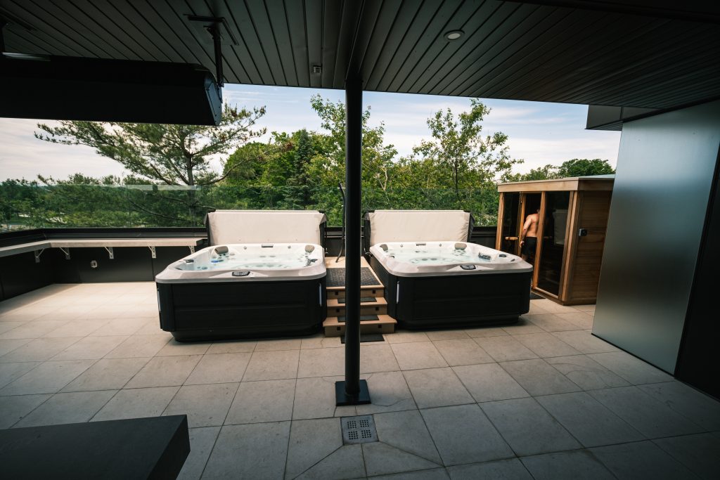 Puis vient le moment de se rassembler. Entre amis ou entre générations. La formule Chalet Urbain a été pensée comme une réponse élégante à ce besoin ancestral : être ensemble sans renoncer à l’espace. Des condos communicants, vastes, intelligemment conçus, deux cuisines, plusieurs salles de bain, des foyers dans les chambres. Certains accueillent même votre chien, parce qu’aucune tribu n’est complète sans ses fidèles compagnons. Sur la terrasse, spas, saunas et foyers extérieurs prolongent les discussions bien après la tombée du jour.