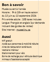 Ici, le patrimoine n’est pas figé. Il est vivant, porté par une communauté fière de son identité et désireuse de la partager. Dès l’accueil, chaleureux et bienveillant, chaque visiteur est invité à entrer dans cet univers avec respect et curiosité. Le musée est ouvert toute l’année et des visites guidées sont offertes en français et en anglais sur demande, afin que chacun puisse pleinement profiter de l’expérience.