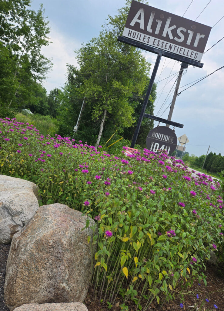 Chez Aliksir, l’aromathérapie ne se veut pas élitiste. Bien au contraire, la boutique de Deschambault invite le grand public à apprivoiser les huiles essentielles avec confiance. Chaque produit est soigneusement certifié biologique (OCQV, USDA, Agriculture Biologique). On y trouve plus de 150 huiles essentielles et hydrolats (eaux florales), mais aussi des produits artisanaux faits en collaboration avec d’autres entreprises québécoises, comme les savons de La Savonnerie des Diligences, des miels aromatiques ou encore des brumes et huiles de massage naturelles. Parmi les coups de cœur de la saison, l’eau essentielle de Thé du Labrador, aux vertus purifiantes et apaisantes, séduit autant pour ses bienfaits digestifs que pour son parfum à la fois vert, épicé et citronné. D’autres hydrolats, comme ceux de verveine odorante ou de mélisse, offrent douceur, tonus ou relaxation selon les besoins.