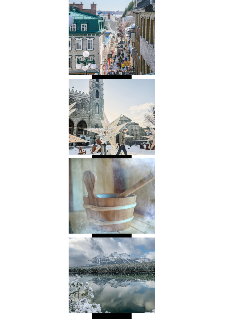 Les villes au charme intemporel, comme Québec et Montréal, se prêtent merveilleusement à une escapade hivernale. Flâner dans le Vieux-Québec, déambuler dans les rues illuminées de Montréal, dormir dans un hôtel historique, savourer un bon repas dans un décor de luxe créent émerveillement, intimité et chaleur.