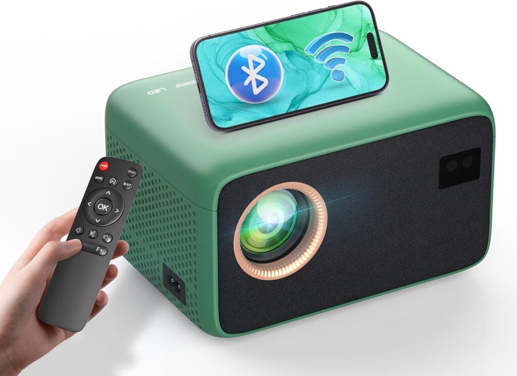 Pour ceux qui aiment le petit vert pâle des cuisines des années 50 voici le Projecteur 4K de GKLPO et derrière ce projecteur est intégrée la plus récente technologie bidirectionnelle Bluetooth 5,2. Cela signifie qu’il peut être facilement connecté à des haut-parleurs Bluetooth et aussi utilisé comme haut-parleur pour se connecter aux téléphones intelligents et aux tablettes.