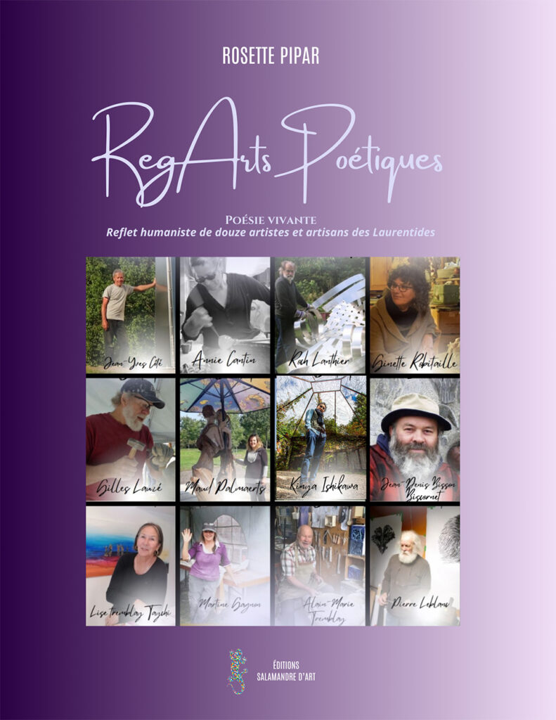 Vous souhaitez en connaître plus sur des artistes sculpteurs québécois? Un magnifique livre retrace le parcours de plusieurs sculpteurs d’ici de renommée internationale et cela grâce à la plume attachante de la poétesse Rosette Pipar. Vous pouvez aussi retrouver leurs univers dans la série d’émission « Reg’Arts poétiques » sur Nous TV Laurentides, issue de cette démarche poétique.